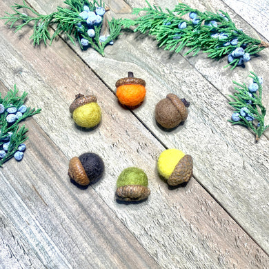 Autumn Felt Acorn Decorations. Fall Decor with Colorful Wool Acorns