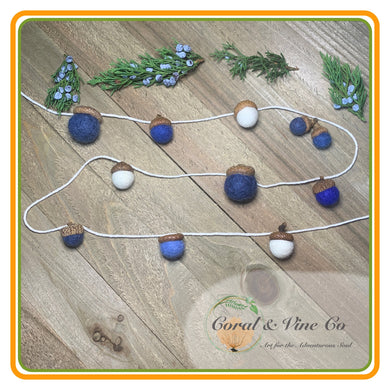 Hanukkah Felt Acorn Decorations. Holiday Decor with Blue & White Wool Acorns