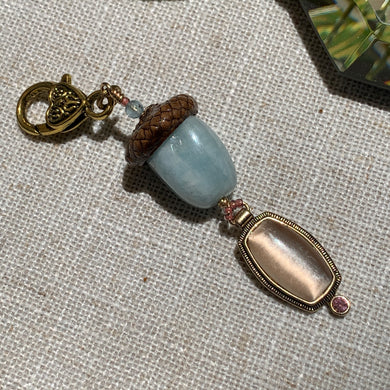 Gold Feather Bookmark with Pink Acorn Gemstone