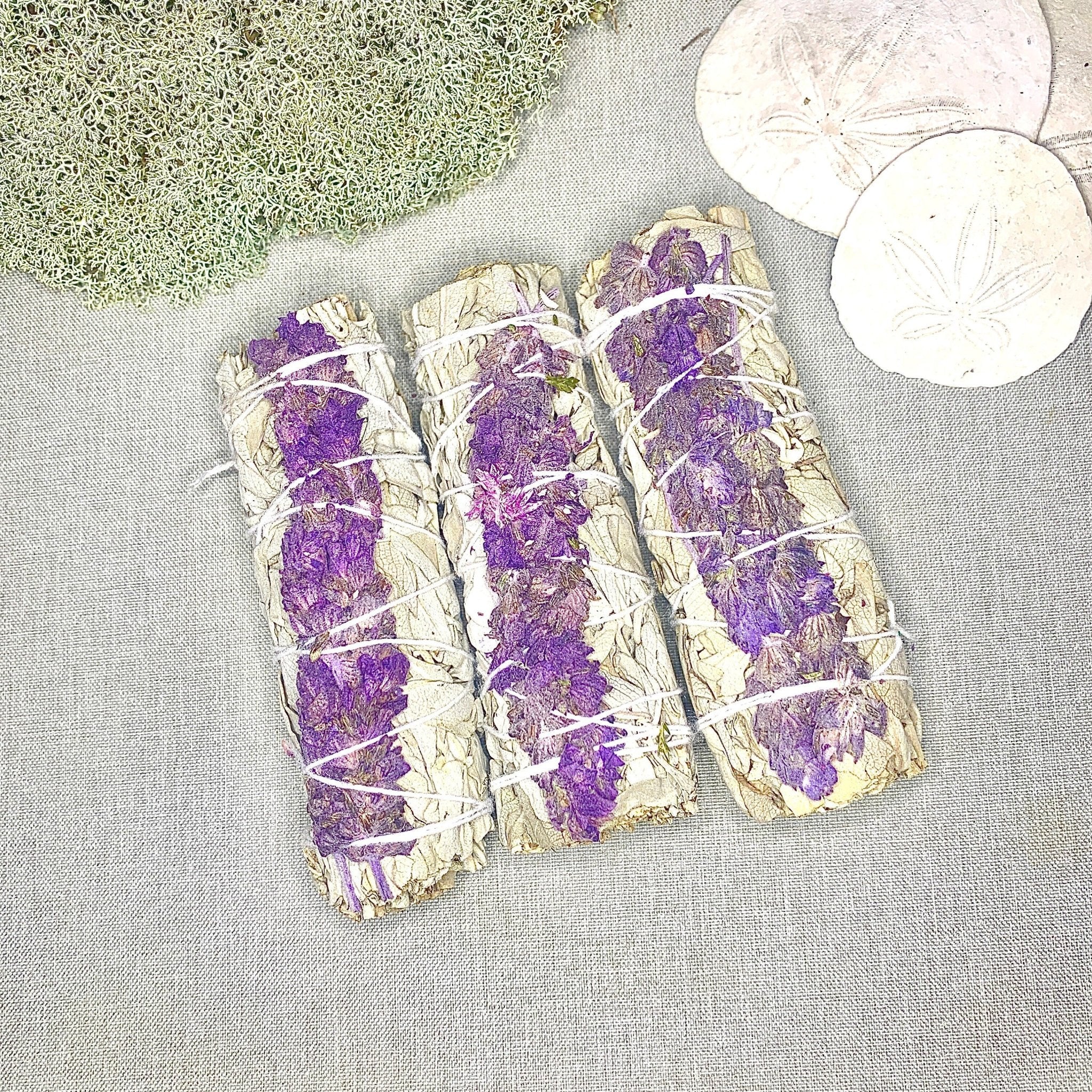 4” white sage with lavender wand. The smudge stick is handmade and very fragrant.