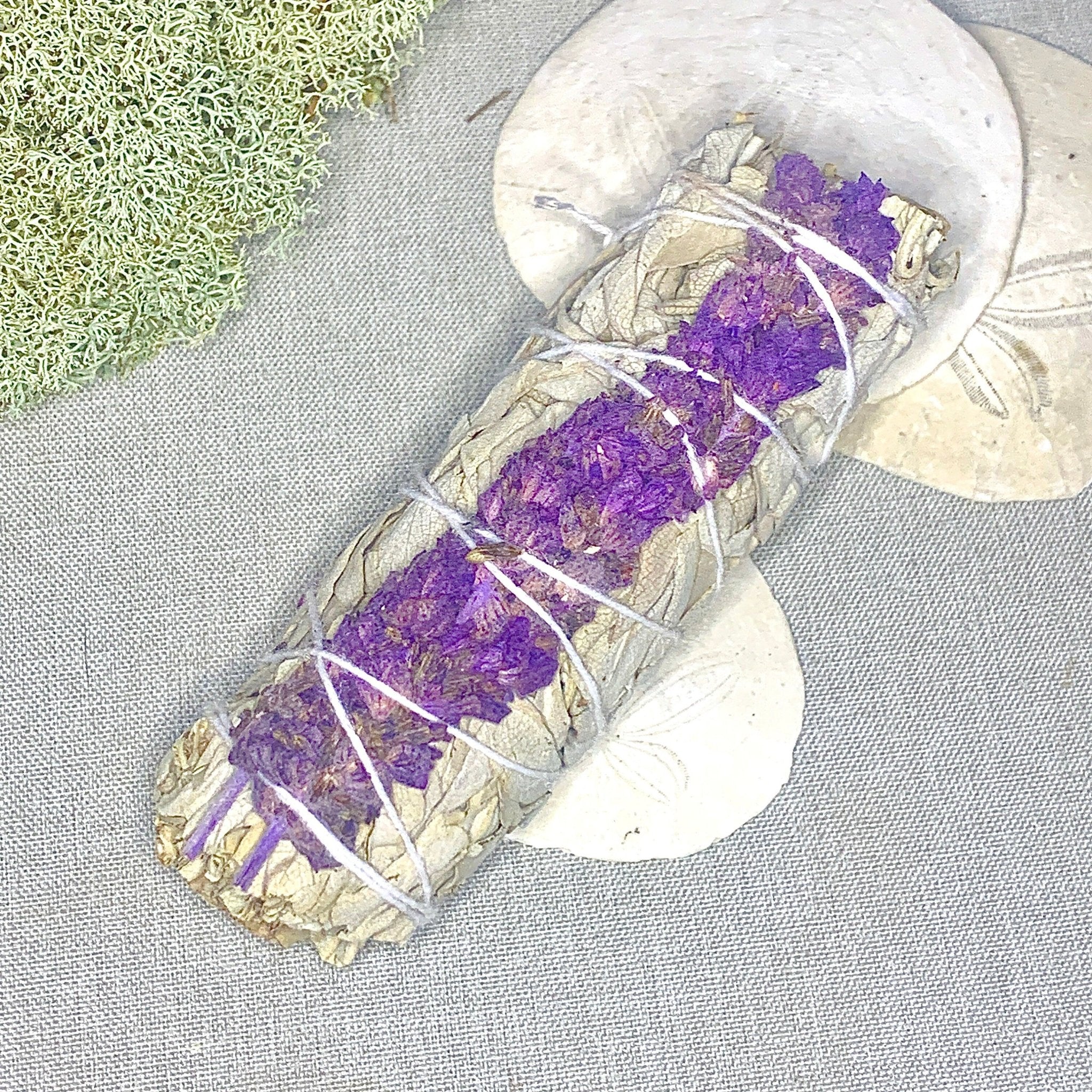 Quality white sage combined with beautiful cleansing lavender flowers. Powerful scent for relaxation and cleansing. This herbal combination makes a perfect smudge experience. You will absolutely get the smell of White sage with a strong hint of lavender when burned. Use for decoration, incense, cleanse, purify and meditation.