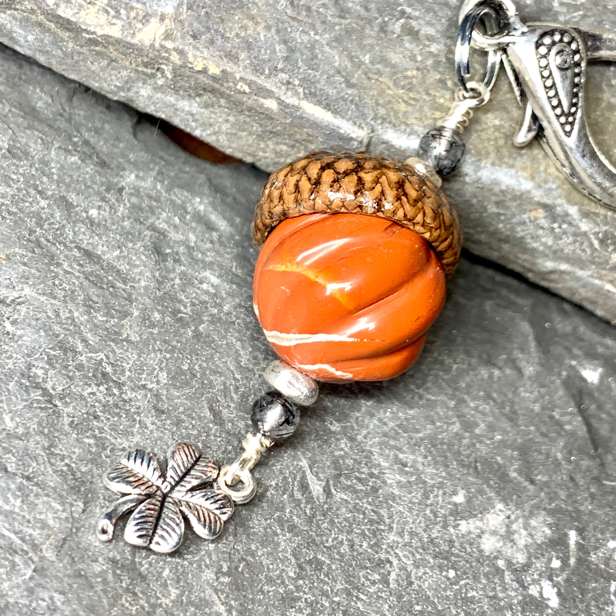 My signature fantasy gemstone acorns made into durable keyrings, purse charms and zipper pulls. They are cute, colorful and each one is totally unique. I make these from acorns harvested in my own forest and think of them as little fantasy colorful gem acorns. Perfect for everyone. I have masculine and feminine styles, lots of colors and both small and large options. I make styles in Gold, Silver and Copper metal colors. The clasps are strong. The stones are wired in (not glued) for strength and will last even with lots of use. The acorn caps are resin coated and will survive lots of bumps, drops and life....