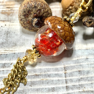 Red Crystal with Gold Flecks Keyring Acorn Charm