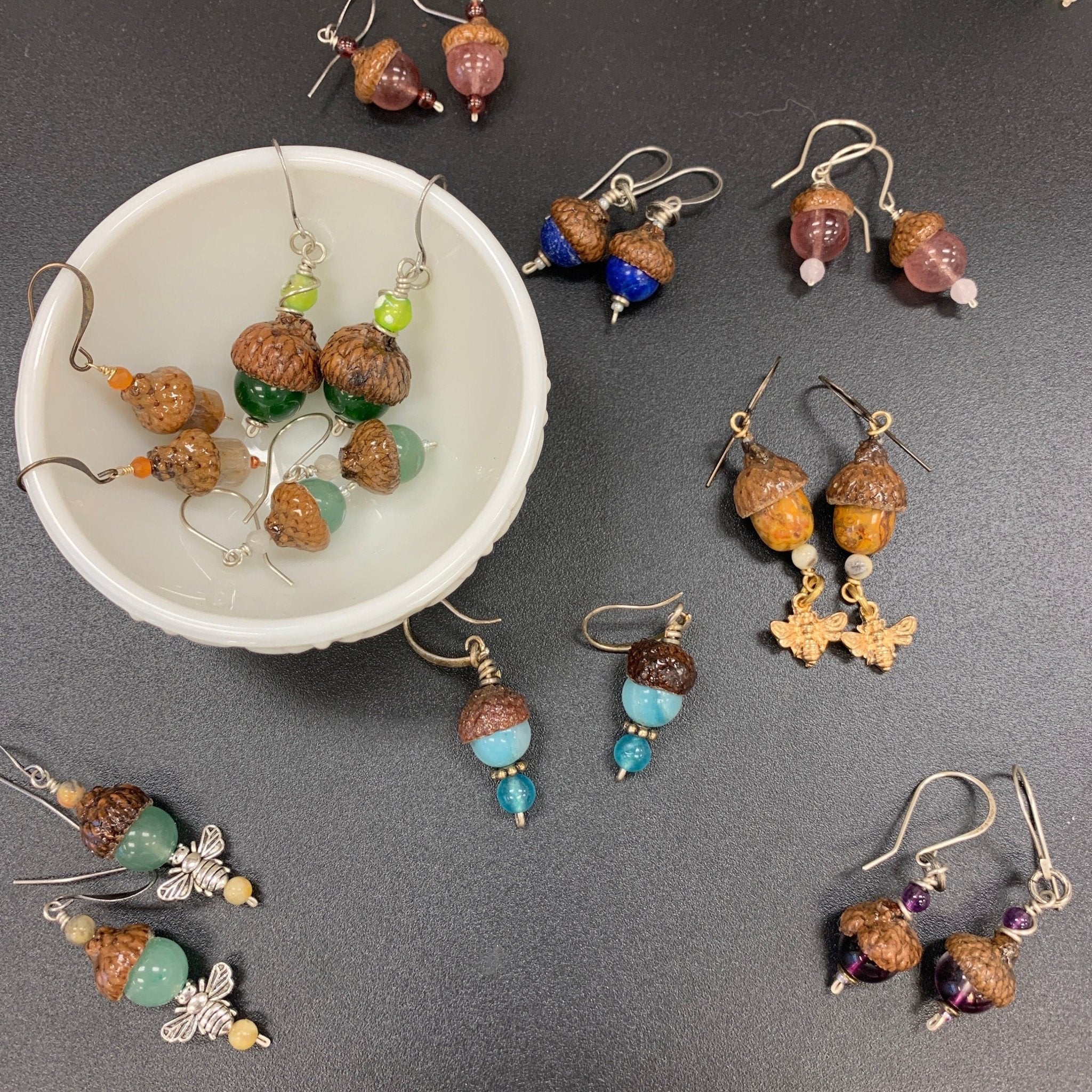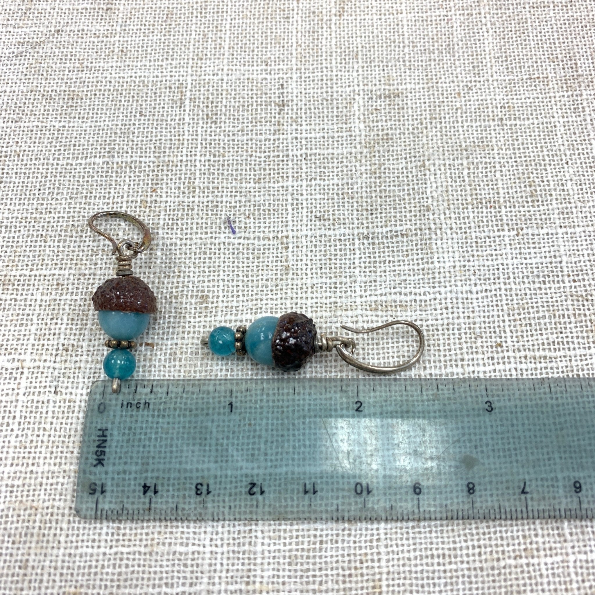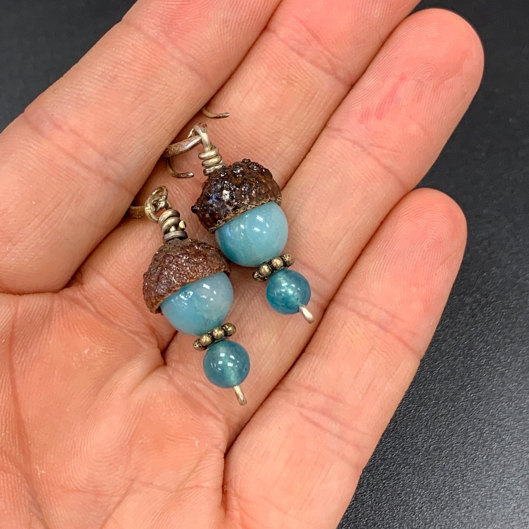 🍁These earrings feature real acorn caps that are carefully handpicked and matched with beautiful gemstone beads in shades of Aqua Amazonite and teal Apatite. The result is a stunning and unique piece of forest-inspired jewelry that reflects the beauty of nature.🍁