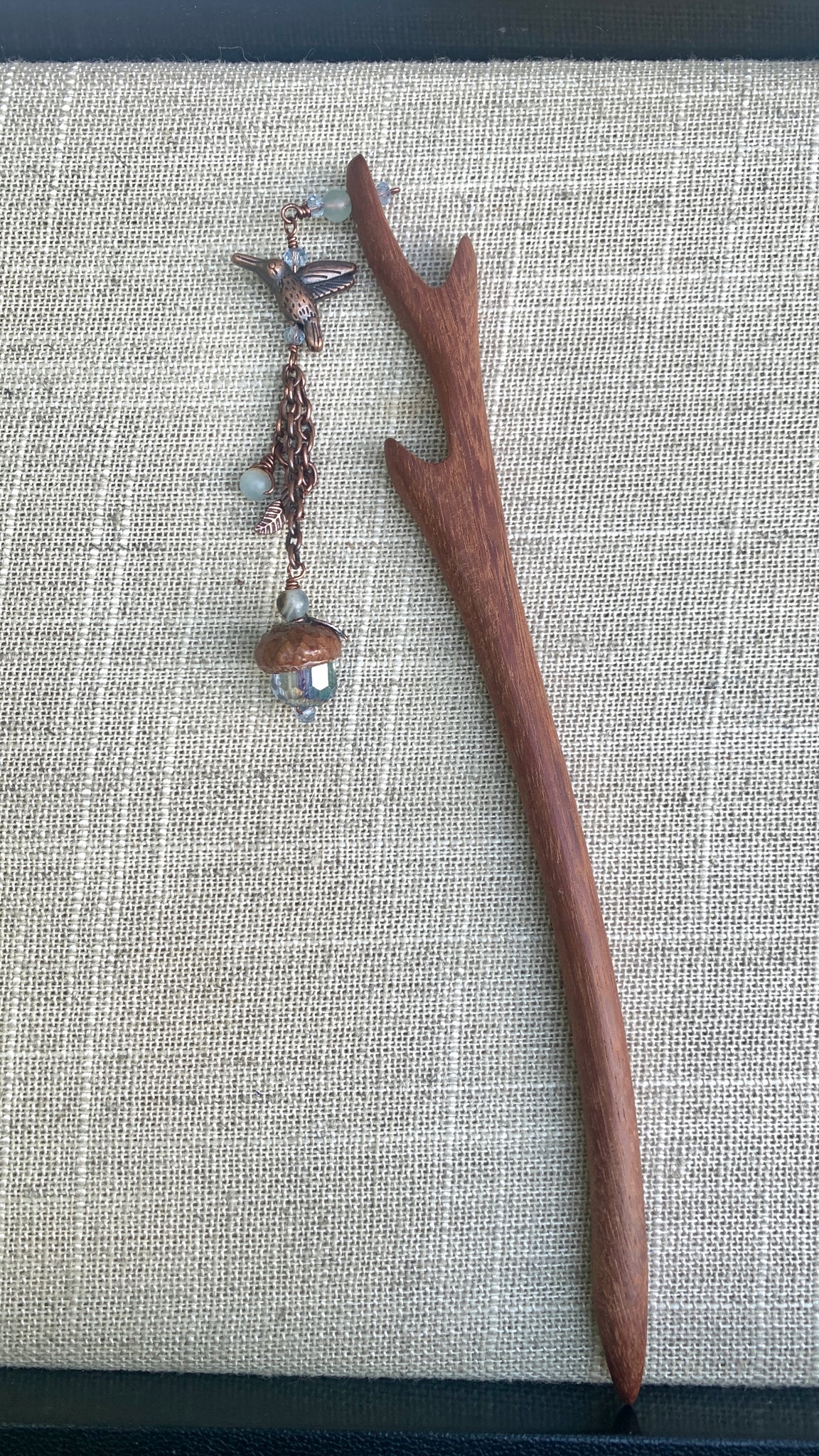 • Load image into Gallery viewer, Hummingbird Hairstick w/ Acorn Gem